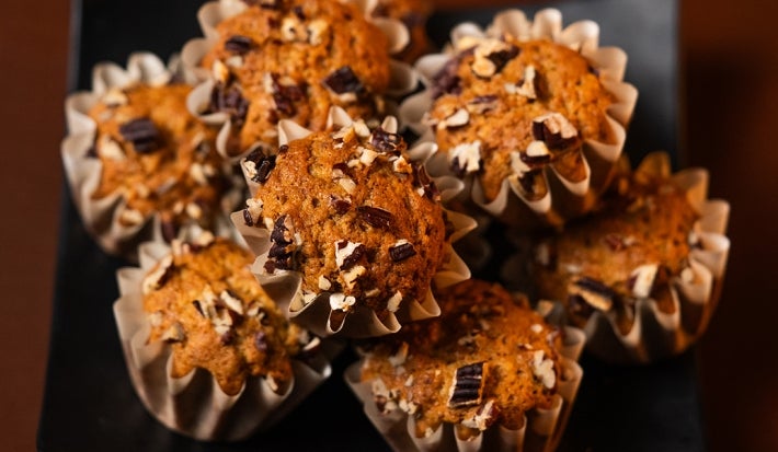 - 6.Top with walnuts and bake in preheated oven for 12-15 minutes or until a toothpick inserted into the center of the muffin comes out clean.